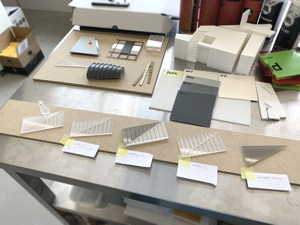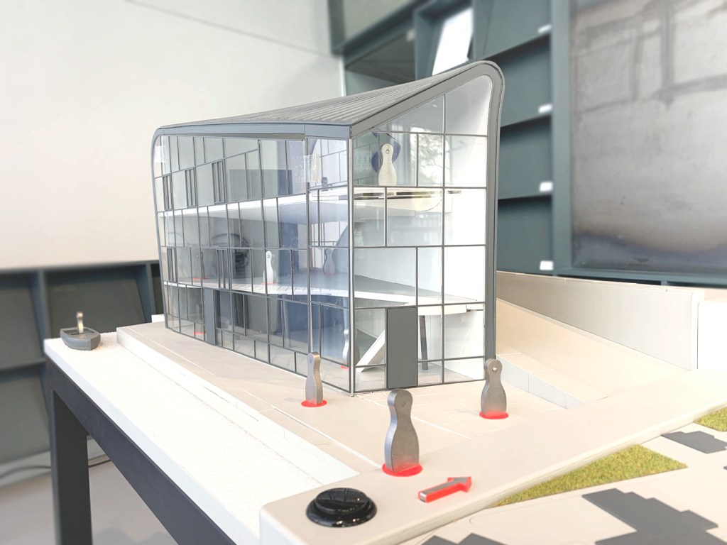 Through a series of studies and close experimental consultations with Hannes, we ultimately choose a "gray scale" model and simplified many details to provide a more balanced tactile experience. Technical elements like cables, buttons, and joints were cleverly integrated into the model's design, hidden within architectural features such as voids and cores. This approach allowed us to present a seamless model where tactile sensations and color contrasts guide users through the building's design.